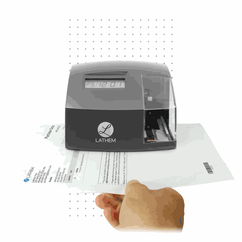 Tru-Align™ option provides fast printing and perfect punch alignment. This feature automatically triggers an imprint when the optional Tru-Align compatible employee time card is inserted properly and aligned with the correct space on the time card. The whisper-print technology delivers extremely quiet time card punches and printing. Prints date and messages and time in AM/PM or 24HR format including seconds